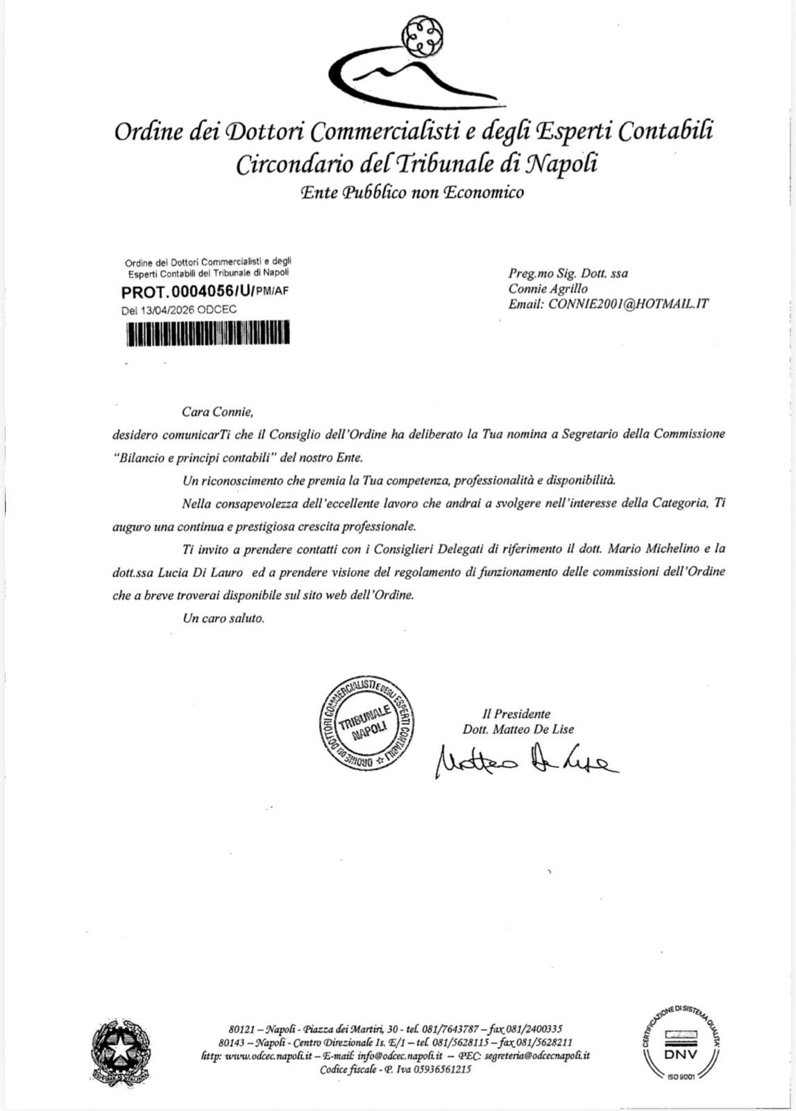 Connie Agrillo Segretario di Commissione Bilancio e Principi Contabili ODCEC Napoli